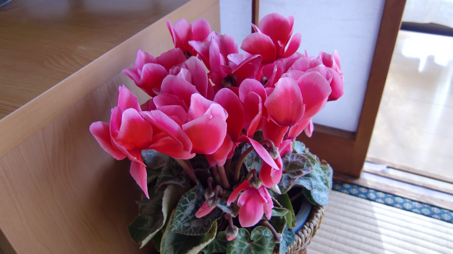 シクラメンの花は、居間のテレビの横に置いてあるもので今日撮ったのですが、他の花は2、3日前に写したものです。
