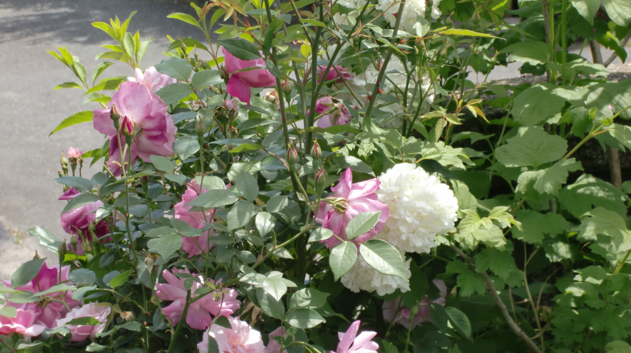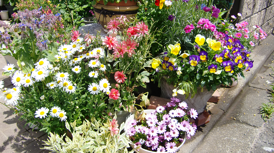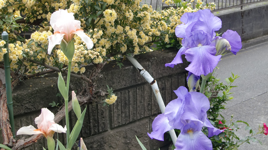 坂本弘司撮影 古閑さん、お花の名前ありがとうございます。オダマキ、クロコスミア、麦ナデシコどれも春の花にふさわしく、かわいらしい姿をしていますね。 高橋さん花の感想ありがとうございます。今年のモッコウバラは例年より長く咲いているようで現在も咲き誇っています。 大沢さん花の感想ありがとうございます。参考まで花の名前を書いておきます。左から、マーガレット、アイリス、青い花がオダマキ、白い花がクロコスミア、麦ナデシコ、です。 大沢先生のおっしゃる通りですね♪♪♪♪♪ 高橋さんの俳句のように古閑さんちのお庭も「春うらら」ですね。初めて見るお花もあるようですね。こんなに色々なお花に囲まれるとルンルン気分で踊り出したくなりますね。古閑さんの奥様もきっと鼻歌まじりにお手入れなさっているのでしょうね。カメラを持ち出すご主人様は大忙しですね。 シャクナゲのピンクの花は、春にピッタリですね♪♪ 一句詠みます。 シャクナゲのピンクの花色春うらら ありがとうございました。 大沢さん花の感想ありがとうございます。モッコウバラは今を盛りと咲いています。ハナズオウも多少葉がでてきましたがまだ咲いています。