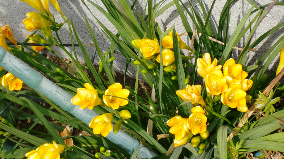 速く見たかったレンギョウは、立派で素晴しいですし、フリージアは蕾がたくさんありますから、これからなんでしょうね。