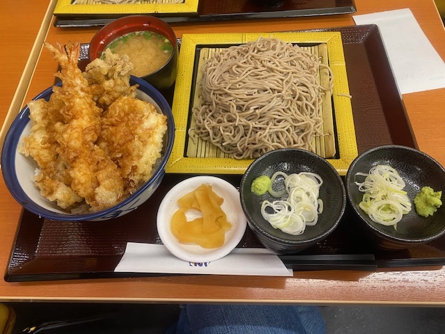 昨年に引き続き、今年も天丼てんやで、野菜天丼(御飯小盛)&冷たいそば(大盛)セットを食べました。
