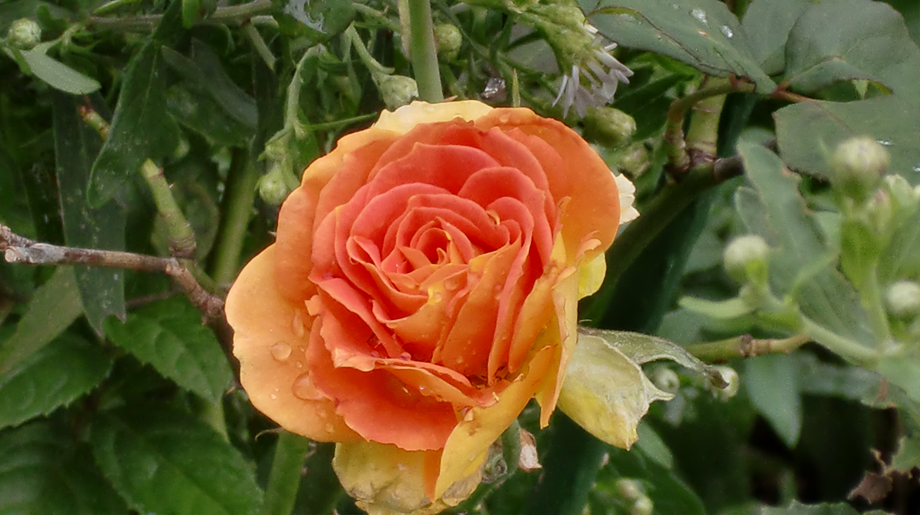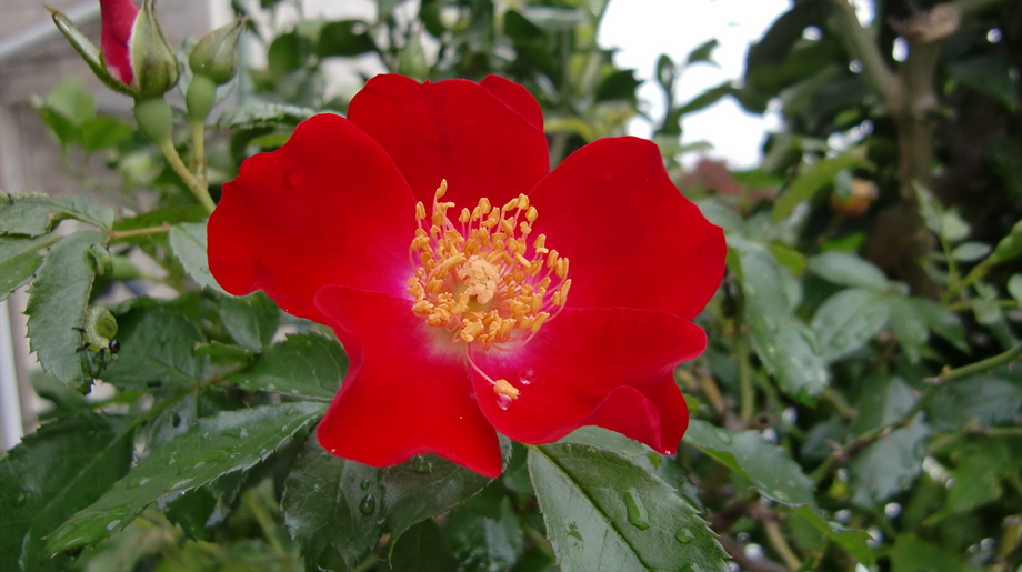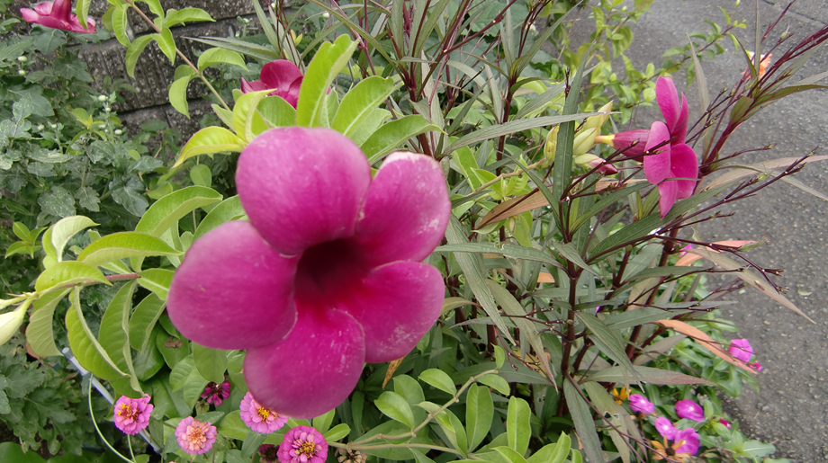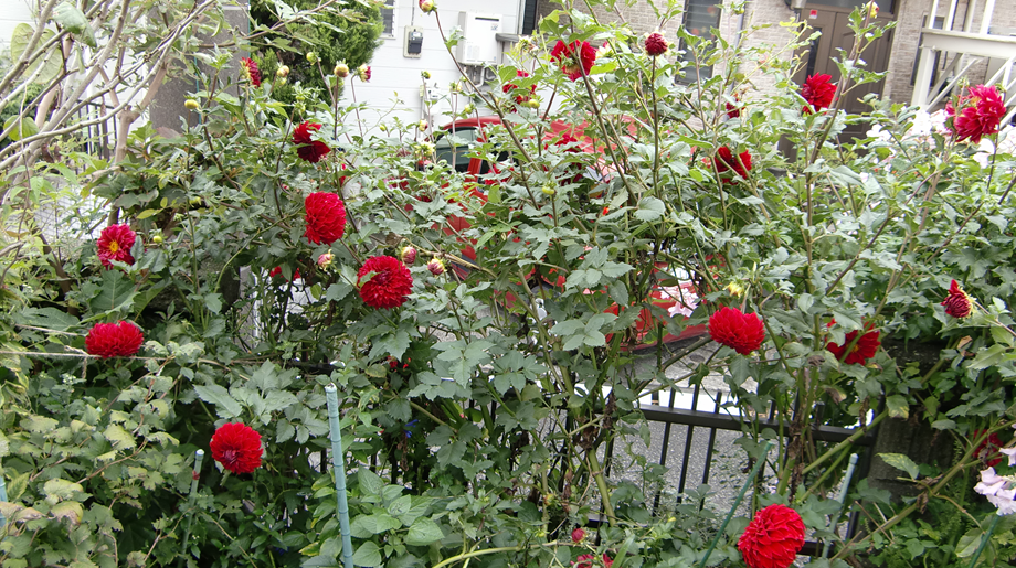 参考まで花の名前を書いておきます。左から、アラマンダ、ダリア、バラ、バラです。古閑さんちのお庭